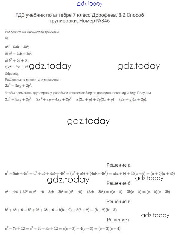 На страницах сайта gdz.today вы найдете учебный и вспомогательный материал, направленный на улучшения знаний школьной программы. ГДЗ - онлайн мир знаний Решение к упражнениям 846 Учебнику по Алгебре для 7 класса Дорофеев, Суворова Просвещение Академический школьный учебник 2020
