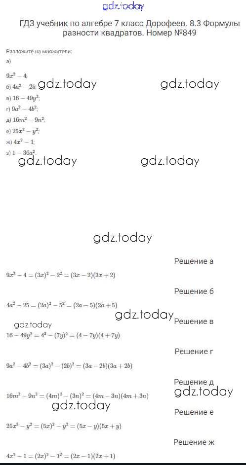 На страницах сайта gdz.today вы найдете учебный и вспомогательный материал, направленный на улучшения знаний школьной программы. ГДЗ - онлайн мир знаний Решение к упражнениям 849 Учебнику по Алгебре для 7 класса Дорофеев, Суворова Просвещение Академический школьный учебник 2020
