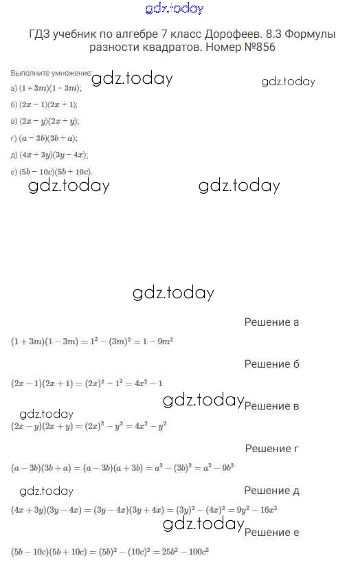 На страницах сайта gdz.today вы найдете учебный и вспомогательный материал, направленный на улучшения знаний школьной программы. ГДЗ - онлайн мир знаний Решение к упражнениям 856 Учебнику по Алгебре для 7 класса Дорофеев, Суворова Просвещение Академический школьный учебник 2020