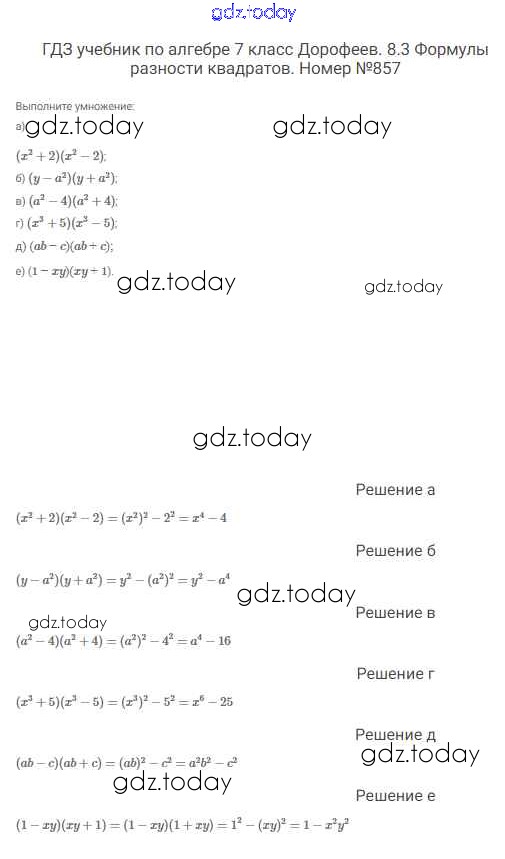На страницах сайта gdz.today вы найдете учебный и вспомогательный материал, направленный на улучшения знаний школьной программы. ГДЗ - онлайн мир знаний Решение к упражнениям 857 Учебнику по Алгебре для 7 класса Дорофеев, Суворова Просвещение Академический школьный учебник 2020