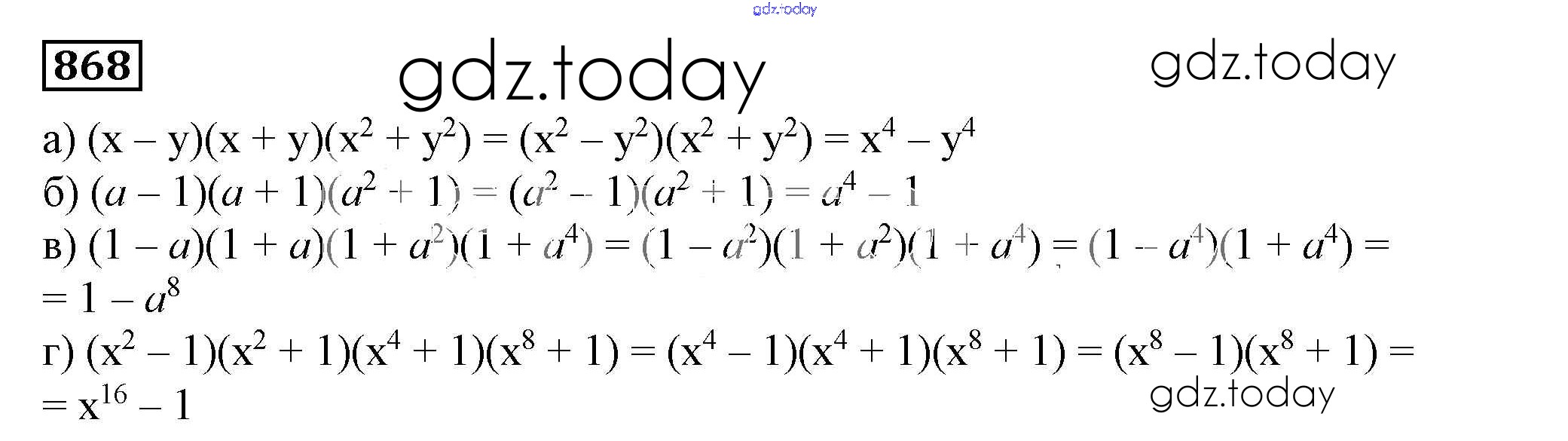 На страницах сайта gdz.today вы найдете учебный и вспомогательный материал, направленный на улучшения знаний школьной программы. ГДЗ - онлайн мир знаний Решение к упражнениям 868 Учебнику по Алгебре для 7 класса Дорофеев, Суворова Просвещение Академический школьный учебник 2020