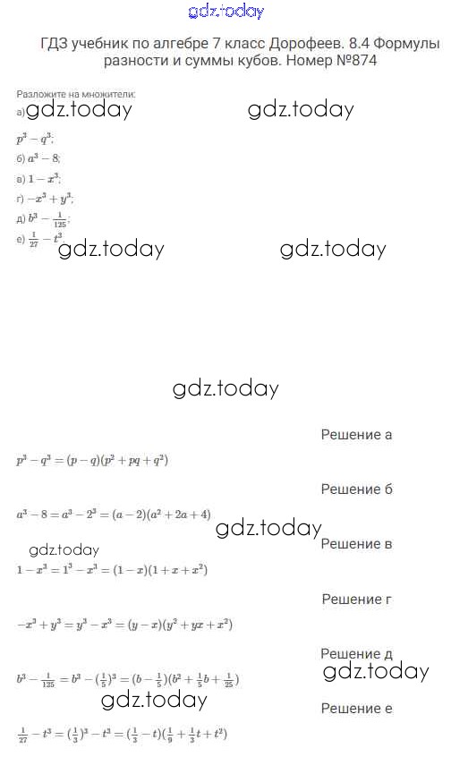 На страницах сайта gdz.today вы найдете учебный и вспомогательный материал, направленный на улучшения знаний школьной программы. ГДЗ - онлайн мир знаний Решение к упражнениям 874 Учебнику по Алгебре для 7 класса Дорофеев, Суворова Просвещение Академический школьный учебник 2020