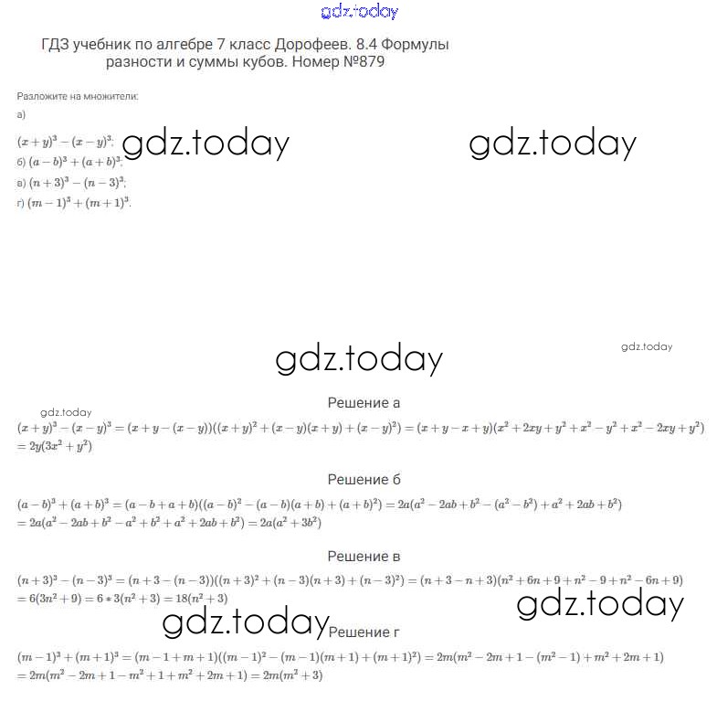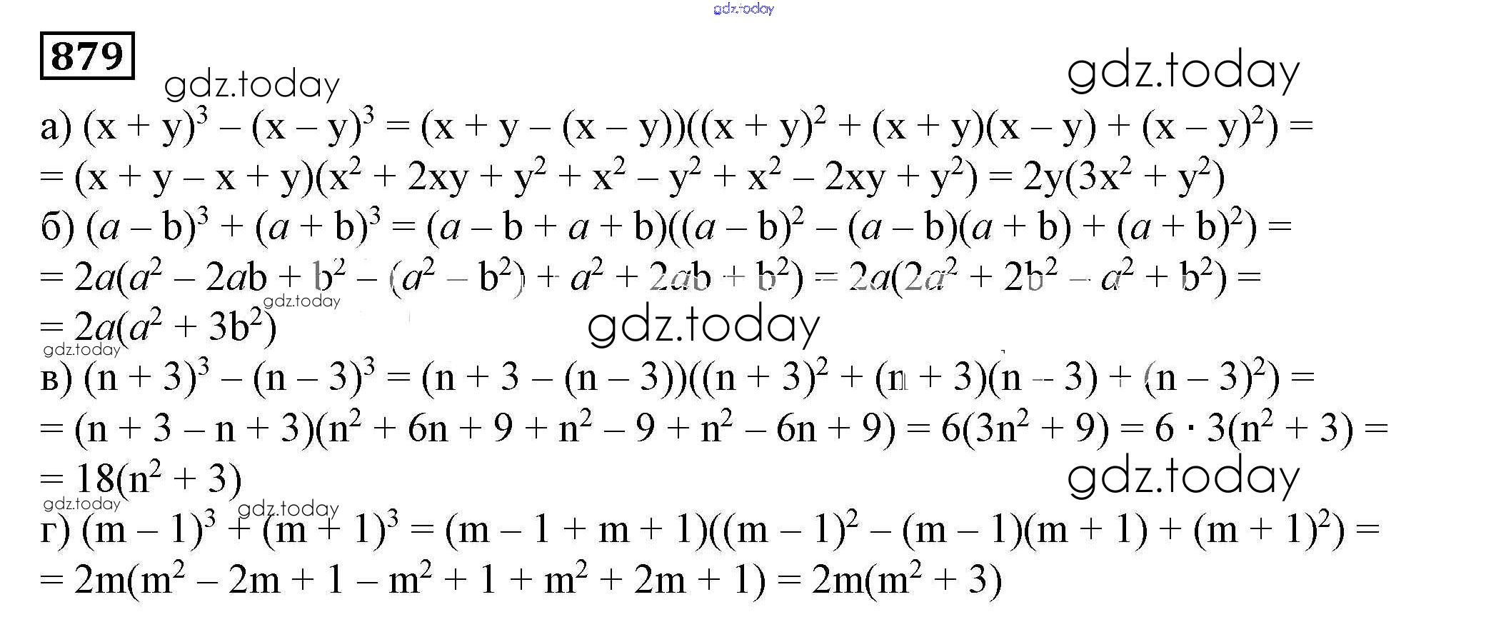 На страницах сайта gdz.today вы найдете учебный и вспомогательный материал, направленный на улучшения знаний школьной программы. ГДЗ - онлайн мир знаний Решение к упражнениям 879 Учебнику по Алгебре для 7 класса Дорофеев, Суворова Просвещение Академический школьный учебник 2020