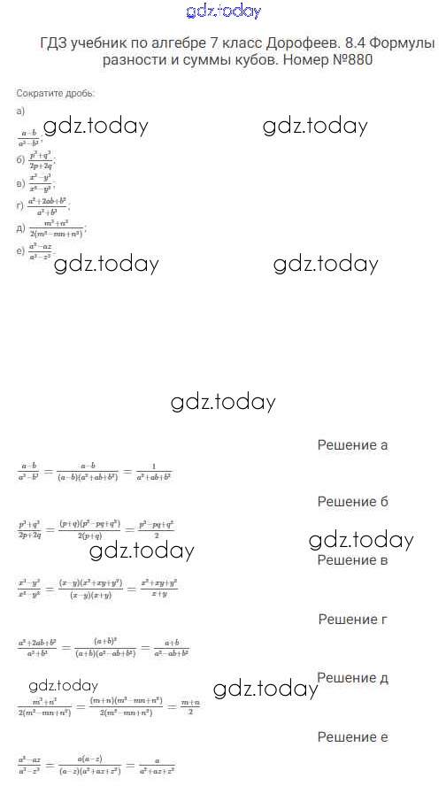 На страницах сайта gdz.today вы найдете учебный и вспомогательный материал, направленный на улучшения знаний школьной программы. ГДЗ - онлайн мир знаний Решение к упражнениям 880 Учебнику по Алгебре для 7 класса Дорофеев, Суворова Просвещение Академический школьный учебник 2020