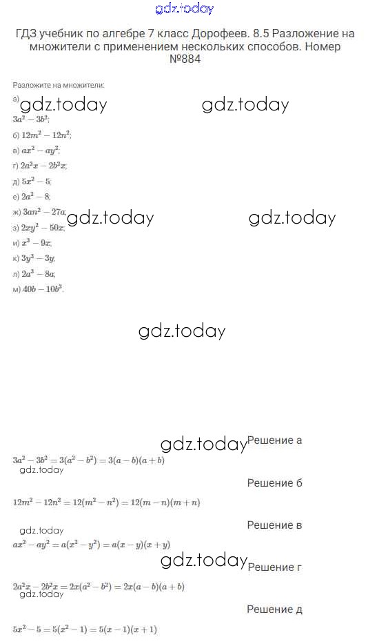 На страницах сайта gdz.today вы найдете учебный и вспомогательный материал, направленный на улучшения знаний школьной программы. ГДЗ - онлайн мир знаний Решение к упражнениям 884 Учебнику по Алгебре для 7 класса Дорофеев, Суворова Просвещение Академический школьный учебник 2020