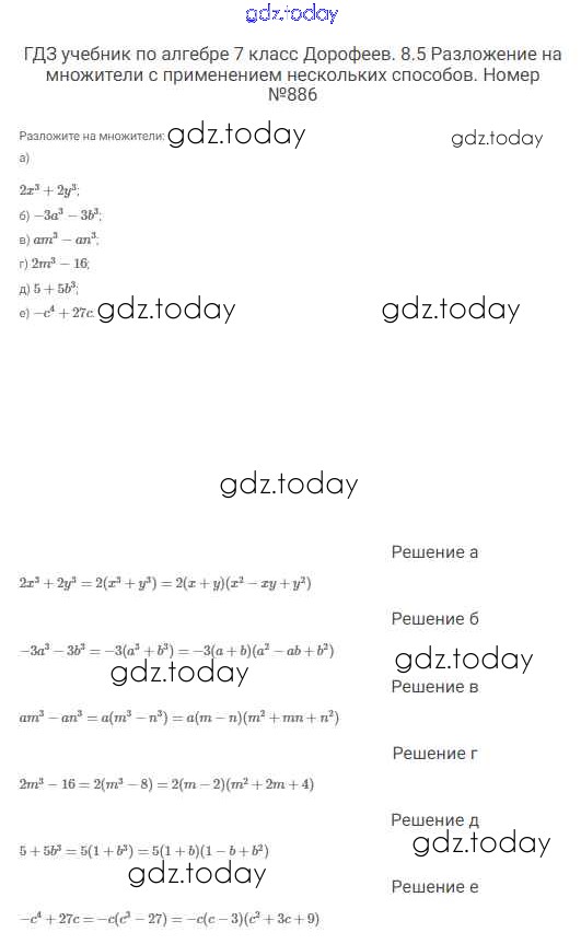 На страницах сайта gdz.today вы найдете учебный и вспомогательный материал, направленный на улучшения знаний школьной программы. ГДЗ - онлайн мир знаний Решение к упражнениям 886 Учебнику по Алгебре для 7 класса Дорофеев, Суворова Просвещение Академический школьный учебник 2020