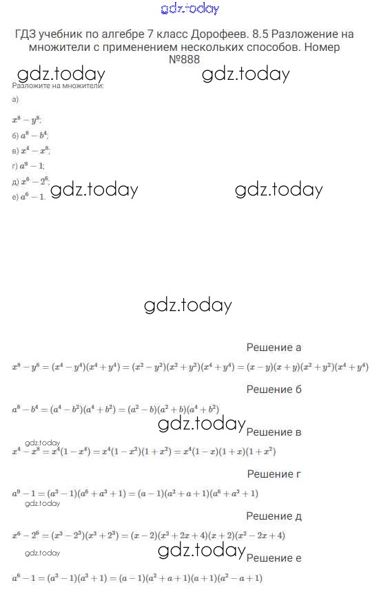 На страницах сайта gdz.today вы найдете учебный и вспомогательный материал, направленный на улучшения знаний школьной программы. ГДЗ - онлайн мир знаний Решение к упражнениям 888 Учебнику по Алгебре для 7 класса Дорофеев, Суворова Просвещение Академический школьный учебник 2020