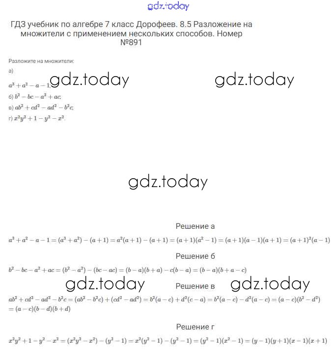 На страницах сайта gdz.today вы найдете учебный и вспомогательный материал, направленный на улучшения знаний школьной программы. ГДЗ - онлайн мир знаний Решение к упражнениям 891 Учебнику по Алгебре для 7 класса Дорофеев, Суворова Просвещение Академический школьный учебник 2020