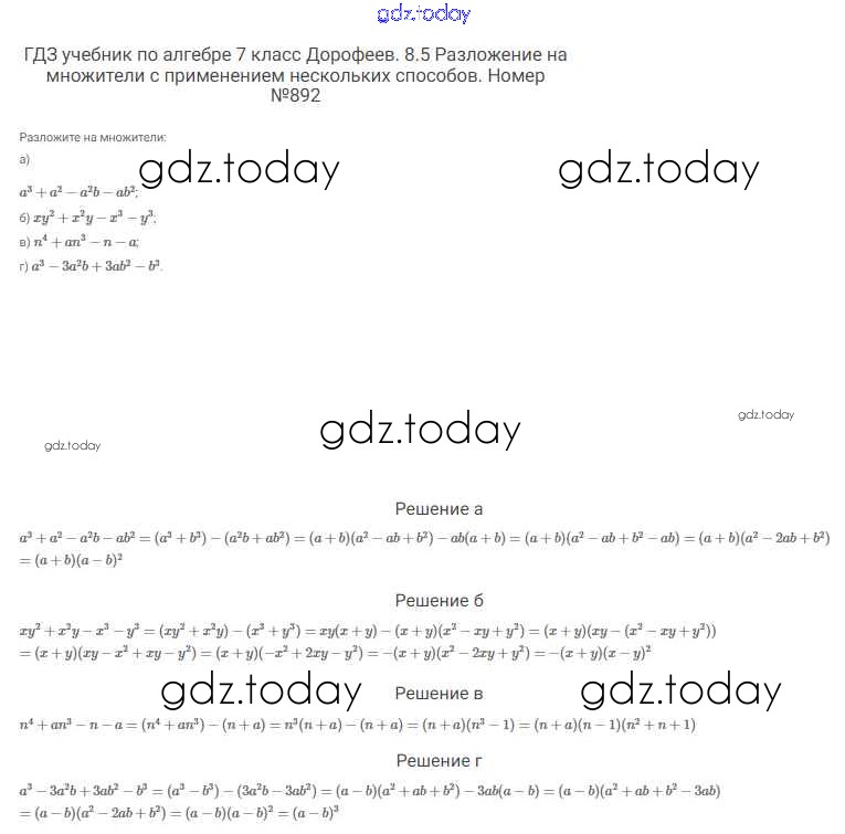 На страницах сайта gdz.today вы найдете учебный и вспомогательный материал, направленный на улучшения знаний школьной программы. ГДЗ - онлайн мир знаний Решение к упражнениям 892 Учебнику по Алгебре для 7 класса Дорофеев, Суворова Просвещение Академический школьный учебник 2020