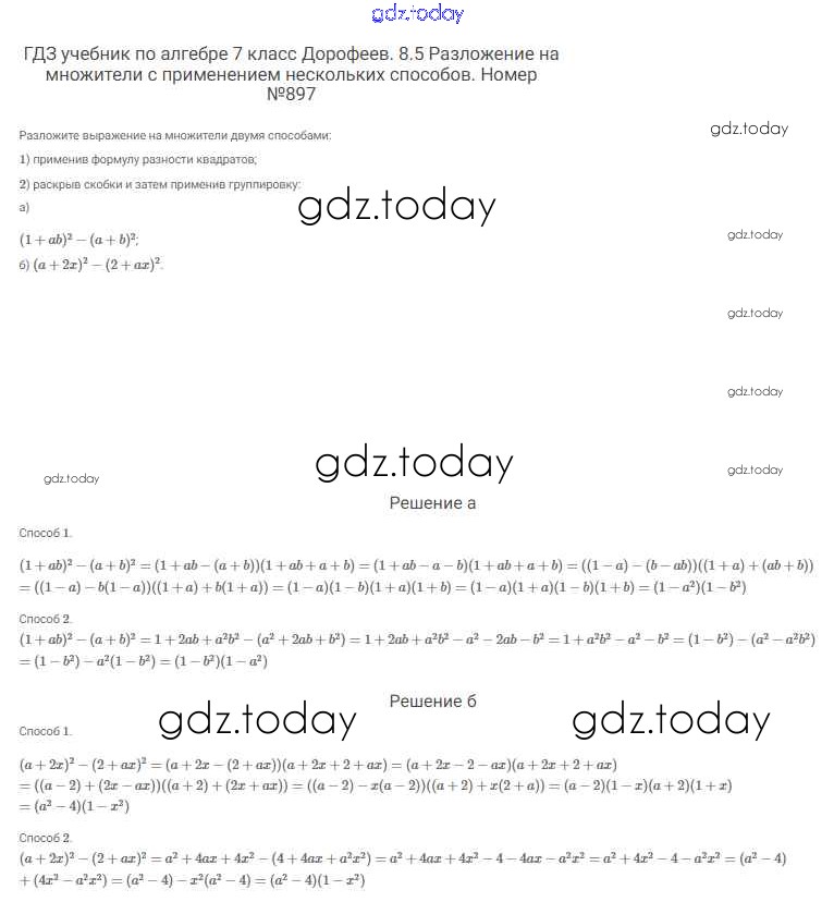 На страницах сайта gdz.today вы найдете учебный и вспомогательный материал, направленный на улучшения знаний школьной программы. ГДЗ - онлайн мир знаний Решение к упражнениям 897 Учебнику по Алгебре для 7 класса Дорофеев, Суворова Просвещение Академический школьный учебник 2020