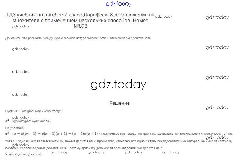 На страницах сайта gdz.today вы найдете учебный и вспомогательный материал, направленный на улучшения знаний школьной программы. ГДЗ - онлайн мир знаний Решение к упражнениям 898 Учебнику по Алгебре для 7 класса Дорофеев, Суворова Просвещение Академический школьный учебник 2020