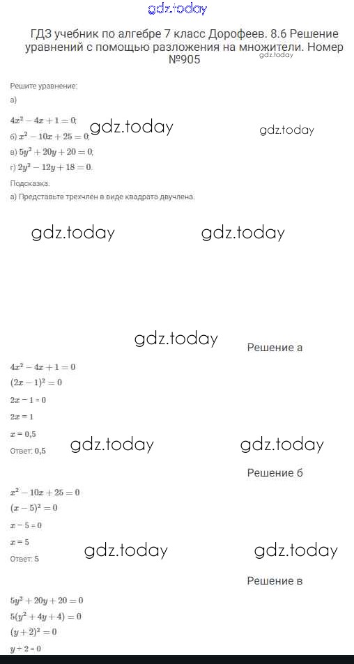 На страницах сайта gdz.today вы найдете учебный и вспомогательный материал, направленный на улучшения знаний школьной программы. ГДЗ - онлайн мир знаний Решение к упражнениям 905 Учебнику по Алгебре для 7 класса Дорофеев, Суворова Просвещение Академический школьный учебник 2020