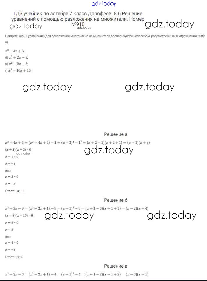 Ответы к Решение к упражнениям 910 Учебнику по Алгебре для 7 класса Дорофеев, Суворова Просвещение Академический школьный учебник 2020