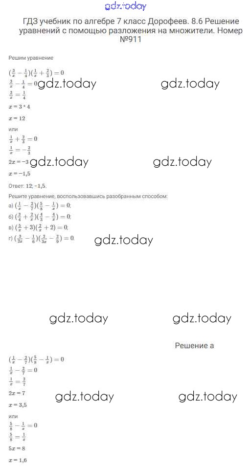 На страницах сайта gdz.today вы найдете учебный и вспомогательный материал, направленный на улучшения знаний школьной программы. ГДЗ - онлайн мир знаний Решение к упражнениям 911 Учебнику по Алгебре для 7 класса Дорофеев, Суворова Просвещение Академический школьный учебник 2020
