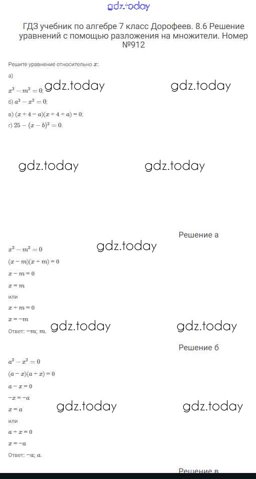 Ответы к Решение к упражнениям 912 Учебнику по Алгебре для 7 класса Дорофеев, Суворова Просвещение Академический школьный учебник 2020