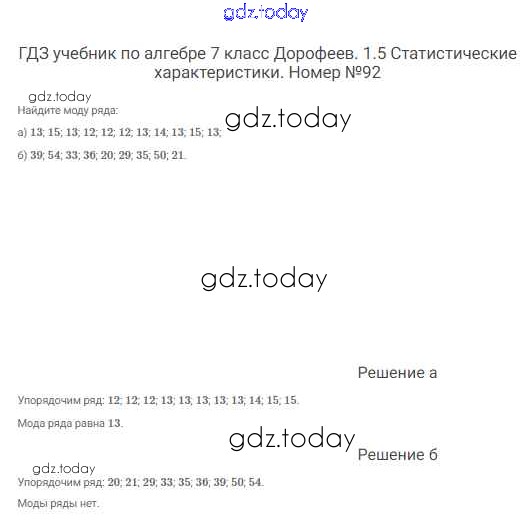 На страницах сайта gdz.today вы найдете учебный и вспомогательный материал, направленный на улучшения знаний школьной программы. ГДЗ - онлайн мир знаний Решение к упражнениям 92 Учебнику по Алгебре для 7 класса Дорофеев, Суворова Просвещение Академический школьный учебник 2020