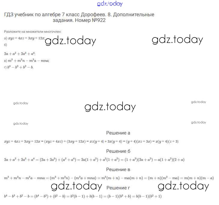 На страницах сайта gdz.today вы найдете учебный и вспомогательный материал, направленный на улучшения знаний школьной программы. ГДЗ - онлайн мир знаний Решение к упражнениям 922 Учебнику по Алгебре для 7 класса Дорофеев, Суворова Просвещение Академический школьный учебник 2020