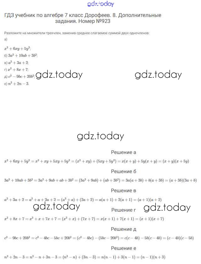 На страницах сайта gdz.today вы найдете учебный и вспомогательный материал, направленный на улучшения знаний школьной программы. ГДЗ - онлайн мир знаний Решение к упражнениям 923 Учебнику по Алгебре для 7 класса Дорофеев, Суворова Просвещение Академический школьный учебник 2020