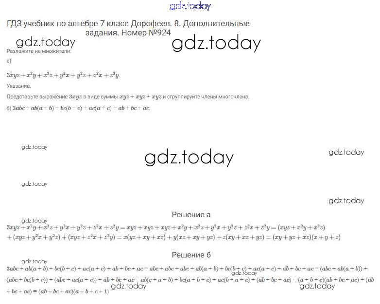 На страницах сайта gdz.today вы найдете учебный и вспомогательный материал, направленный на улучшения знаний школьной программы. ГДЗ - онлайн мир знаний Решение к упражнениям 924 Учебнику по Алгебре для 7 класса Дорофеев, Суворова Просвещение Академический школьный учебник 2020