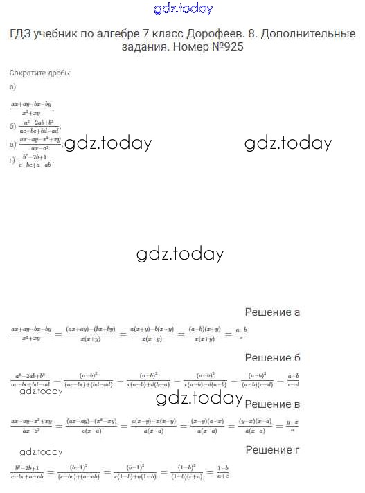 На страницах сайта gdz.today вы найдете учебный и вспомогательный материал, направленный на улучшения знаний школьной программы. ГДЗ - онлайн мир знаний Решение к упражнениям 925 Учебнику по Алгебре для 7 класса Дорофеев, Суворова Просвещение Академический школьный учебник 2020