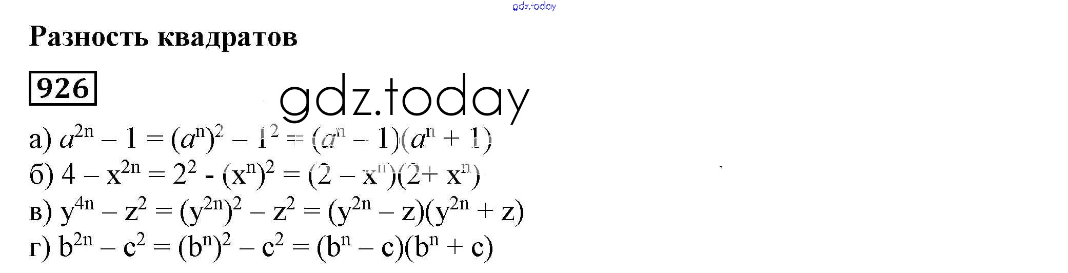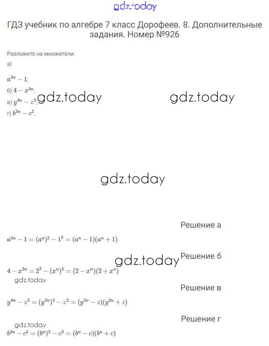 На страницах сайта gdz.today вы найдете учебный и вспомогательный материал, направленный на улучшения знаний школьной программы. ГДЗ - онлайн мир знаний Решение к упражнениям 926 Учебнику по Алгебре для 7 класса Дорофеев, Суворова Просвещение Академический школьный учебник 2020