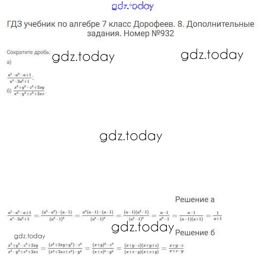 На страницах сайта gdz.today вы найдете учебный и вспомогательный материал, направленный на улучшения знаний школьной программы. ГДЗ - онлайн мир знаний Решение к упражнениям 932 Учебнику по Алгебре для 7 класса Дорофеев, Суворова Просвещение Академический школьный учебник 2020