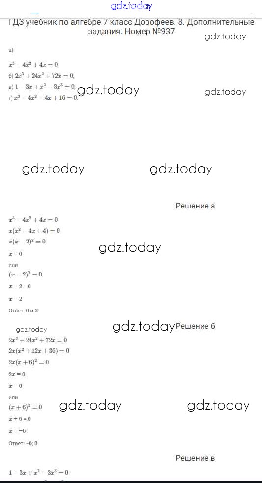 На страницах сайта gdz.today вы найдете учебный и вспомогательный материал, направленный на улучшения знаний школьной программы. ГДЗ - онлайн мир знаний Решение к упражнениям 937 Учебнику по Алгебре для 7 класса Дорофеев, Суворова Просвещение Академический школьный учебник 2020