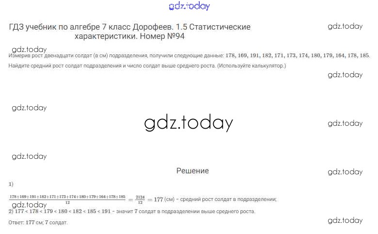 На страницах сайта gdz.today вы найдете учебный и вспомогательный материал, направленный на улучшения знаний школьной программы. ГДЗ - онлайн мир знаний Решение к упражнениям 94 Учебнику по Алгебре для 7 класса Дорофеев, Суворова Просвещение Академический школьный учебник 2020