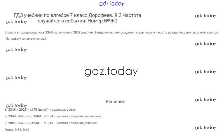 Ответы к Решение к упражнениям 960 Учебнику по Алгебре для 7 класса Дорофеев, Суворова Просвещение Академический школьный учебник 2020
