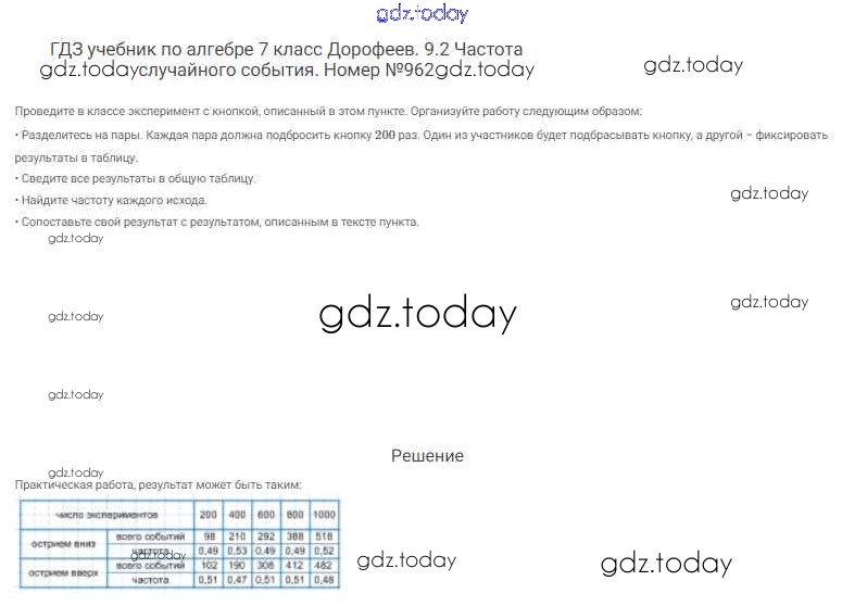 На страницах сайта gdz.today вы найдете учебный и вспомогательный материал, направленный на улучшения знаний школьной программы. ГДЗ - онлайн мир знаний Решение к упражнениям 962 Учебнику по Алгебре для 7 класса Дорофеев, Суворова Просвещение Академический школьный учебник 2020
