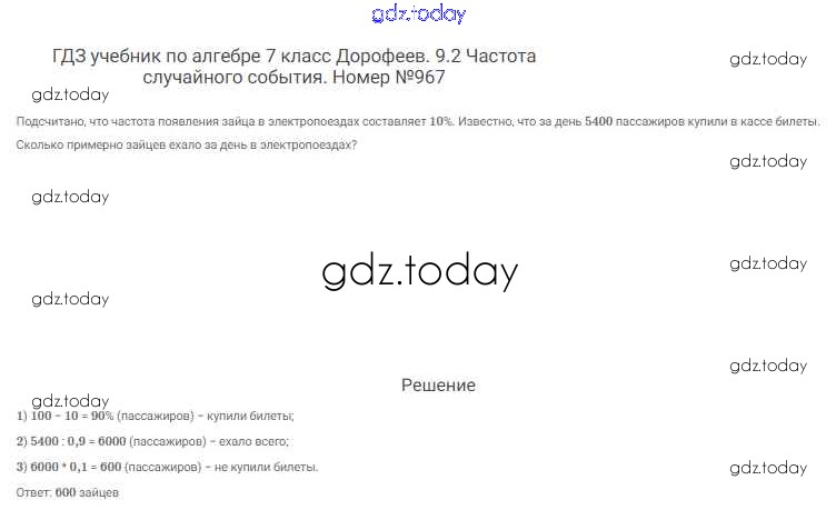 На страницах сайта gdz.today вы найдете учебный и вспомогательный материал, направленный на улучшения знаний школьной программы. ГДЗ - онлайн мир знаний Решение к упражнениям 967 Учебнику по Алгебре для 7 класса Дорофеев, Суворова Просвещение Академический школьный учебник 2020