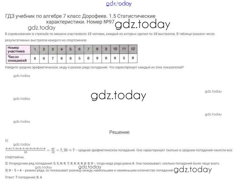 На страницах сайта gdz.today вы найдете учебный и вспомогательный материал, направленный на улучшения знаний школьной программы. ГДЗ - онлайн мир знаний Решение к упражнениям 97 Учебнику по Алгебре для 7 класса Дорофеев, Суворова Просвещение Академический школьный учебник 2020