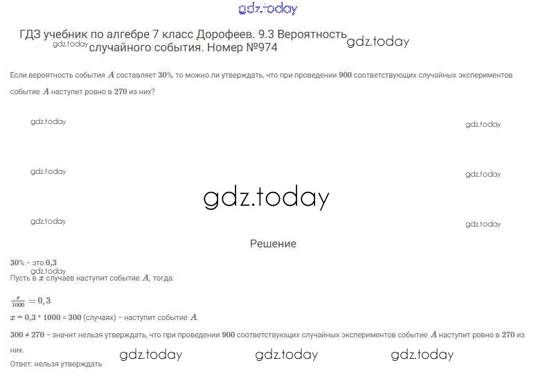 На страницах сайта gdz.today вы найдете учебный и вспомогательный материал, направленный на улучшения знаний школьной программы. ГДЗ - онлайн мир знаний Решение к упражнениям 974 Учебнику по Алгебре для 7 класса Дорофеев, Суворова Просвещение Академический школьный учебник 2020