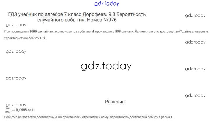 На страницах сайта gdz.today вы найдете учебный и вспомогательный материал, направленный на улучшения знаний школьной программы. ГДЗ - онлайн мир знаний Решение к упражнениям 976 Учебнику по Алгебре для 7 класса Дорофеев, Суворова Просвещение Академический школьный учебник 2020