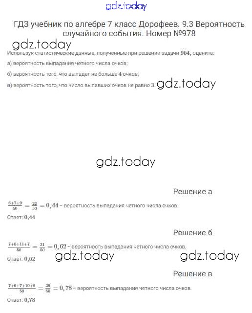 Ответы к Решение к упражнениям 978 Учебнику по Алгебре для 7 класса Дорофеев, Суворова Просвещение Академический школьный учебник 2020