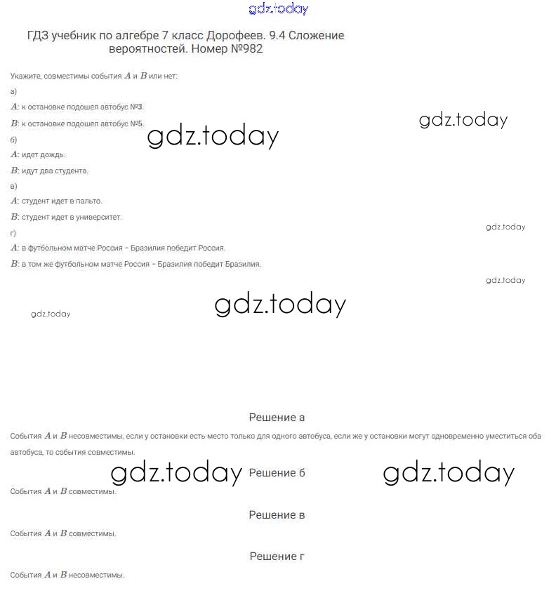На страницах сайта gdz.today вы найдете учебный и вспомогательный материал, направленный на улучшения знаний школьной программы. ГДЗ - онлайн мир знаний Решение к упражнениям 982 Учебнику по Алгебре для 7 класса Дорофеев, Суворова Просвещение Академический школьный учебник 2020