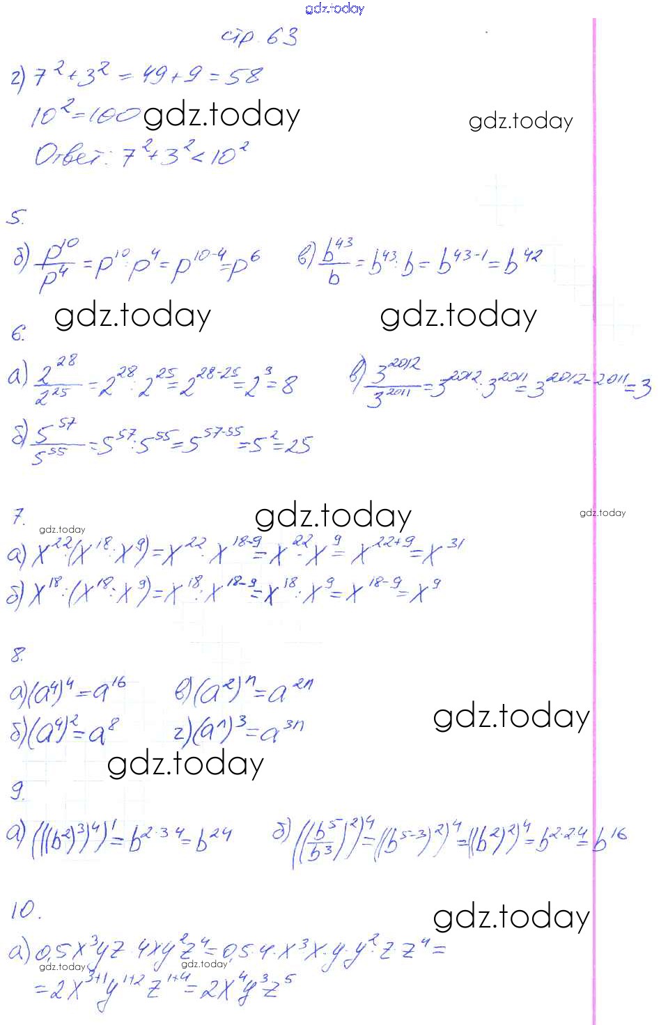 На страницах сайта gdz.today вы найдете учебный и вспомогательный материал, направленный на улучшения знаний школьной программы. ГДЗ - онлайн мир знаний Страницы (решение) 63 Рабочей тетради по Алгебре для 7 класса Ключникова, Комиссарова Экзамен УМК 2013