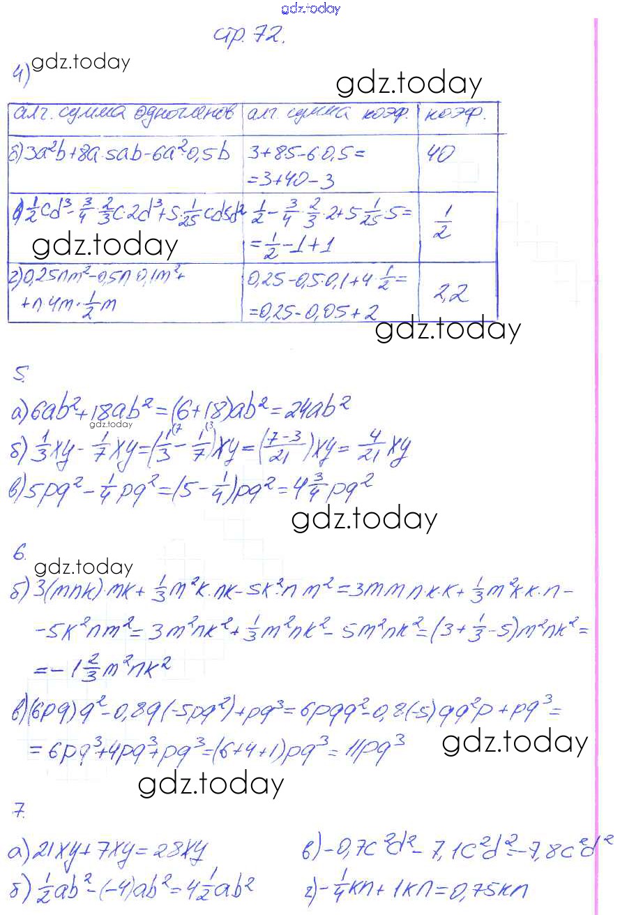 Ответы к Страницы (решение) 72 Рабочей тетради по Алгебре для 7 класса Ключникова, Комиссарова Экзамен УМК 2013