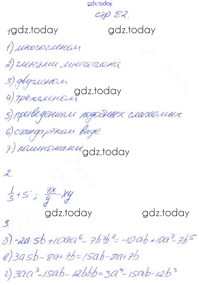 На страницах сайта gdz.today вы найдете учебный и вспомогательный материал, направленный на улучшения знаний школьной программы. ГДЗ - онлайн мир знаний Страницы (решение) 82 Рабочей тетради по Алгебре для 7 класса Ключникова, Комиссарова Экзамен УМК 2013
