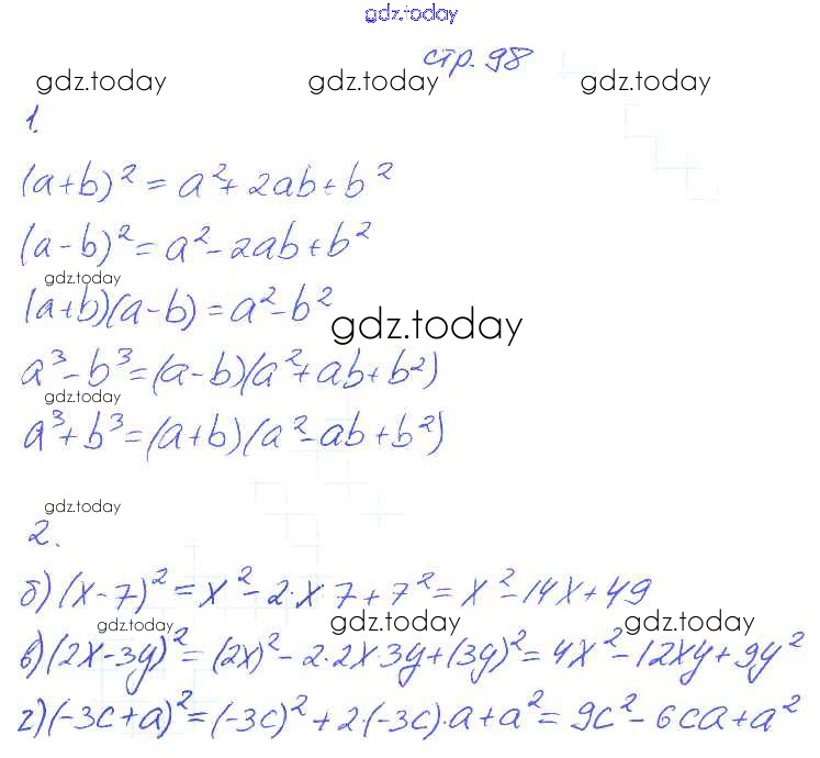 На страницах сайта gdz.today вы найдете учебный и вспомогательный материал, направленный на улучшения знаний школьной программы. ГДЗ - онлайн мир знаний Страницы (решение) 98 Рабочей тетради по Алгебре для 7 класса Ключникова, Комиссарова Экзамен УМК 2013