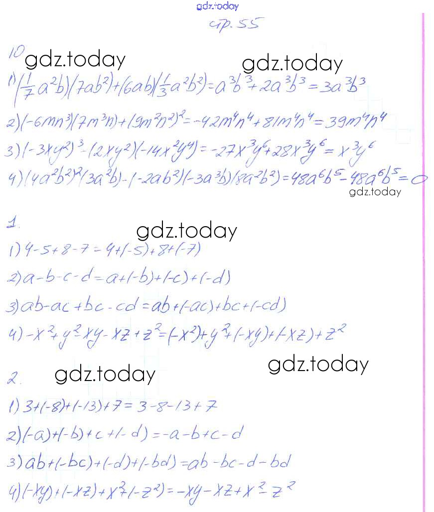 На страницах сайта gdz.today вы найдете учебный и вспомогательный материал, направленный на улучшения знаний школьной программы. ГДЗ - онлайн мир знаний Решение к части 1 55 Рабочей тетради по Алгебре для 7 класса Колягин, Ткачева Просвещение УМК 2017