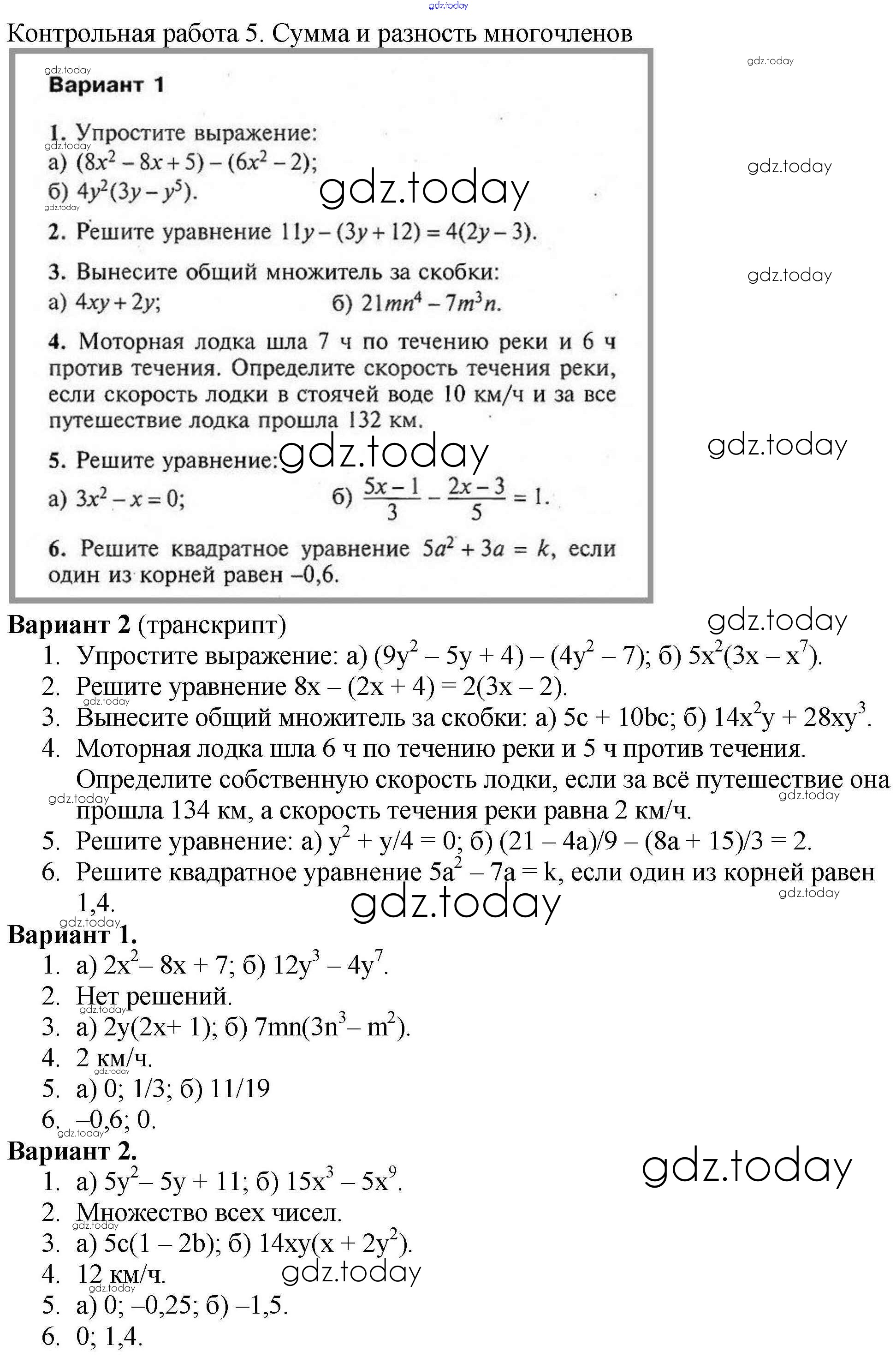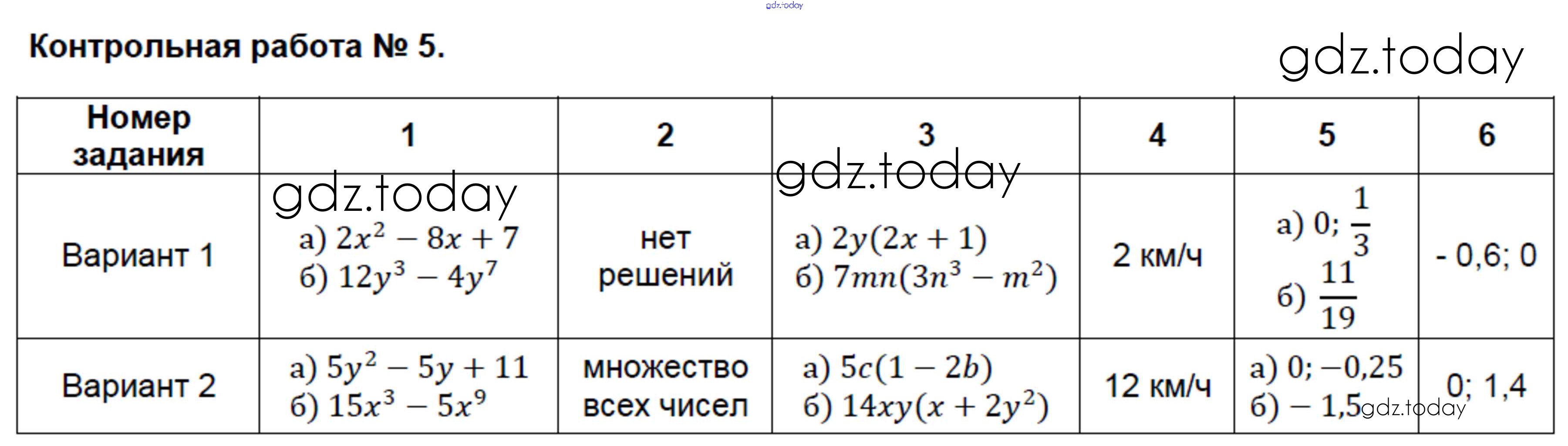 На страницах сайта gdz.today вы найдете учебный и вспомогательный материал, направленный на улучшения знаний школьной программы. ГДЗ - онлайн мир знаний Решение к контрольным работам 5 Контрольно-измерительным материалам (КИМ) по Алгебре для 7 класса Мартышова ВАКО 2017