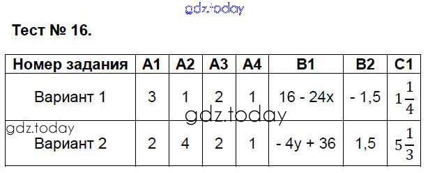 На страницах сайта gdz.today вы найдете учебный и вспомогательный материал, направленный на улучшения знаний школьной программы. ГДЗ - онлайн мир знаний Решение к тестам 16 Контрольно-измерительным материалам (КИМ) по Алгебре для 7 класса Мартышова ВАКО 2017