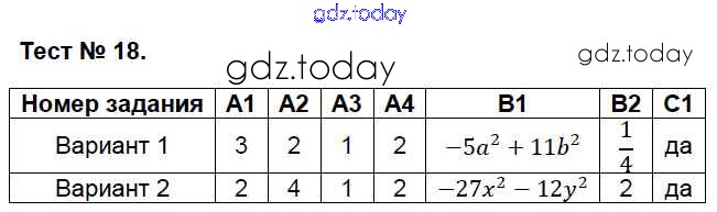 На страницах сайта gdz.today вы найдете учебный и вспомогательный материал, направленный на улучшения знаний школьной программы. ГДЗ - онлайн мир знаний Решение к тестам 18 Контрольно-измерительным материалам (КИМ) по Алгебре для 7 класса Мартышова ВАКО 2017