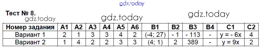 На страницах сайта gdz.today вы найдете учебный и вспомогательный материал, направленный на улучшения знаний школьной программы. ГДЗ - онлайн мир знаний Решение к тестам 8 Контрольно-измерительным материалам (КИМ) по Алгебре для 7 класса Мартышова ВАКО 2017