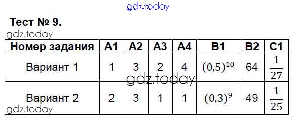 Ответы к Решение к тестам 9 Контрольно-измерительным материалам (КИМ) по Алгебре для 7 класса Мартышова ВАКО 2017