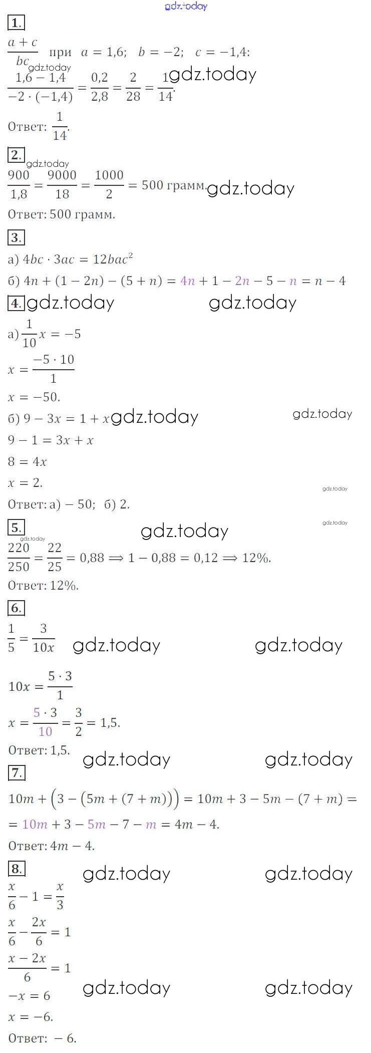Ответы к Решение к контрольной работе №10. Итоговая работа за I полугодие Вариант 4 Контрольным работам по Алгебре для 7 класса Кузнецова, Минаева Просвещение 2018