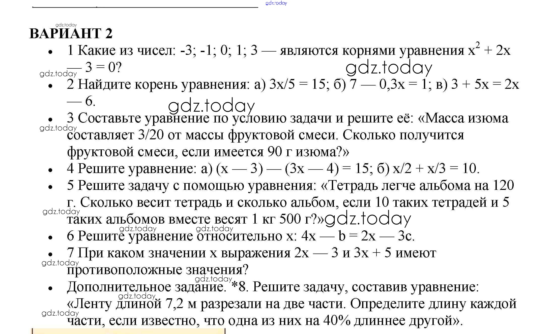 На страницах сайта gdz.today вы найдете учебный и вспомогательный материал, направленный на улучшения знаний школьной программы. ГДЗ - онлайн мир знаний Решение к контрольной работе №4. Уравнения Вариант 2 Контрольным работам по Алгебре для 7 класса Кузнецова, Минаева Просвещение 2018