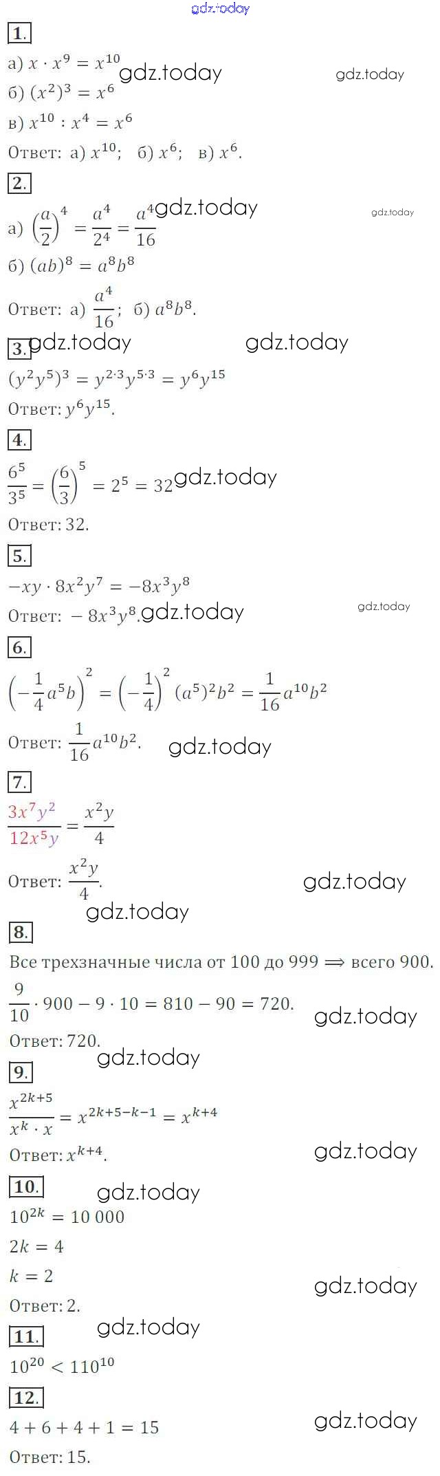 Ответы к Решение к контрольной работе №6. Свойства степени с натуральным показателем Вариант 3 Контрольным работам по Алгебре для 7 класса Кузнецова, Минаева Просвещение 2018