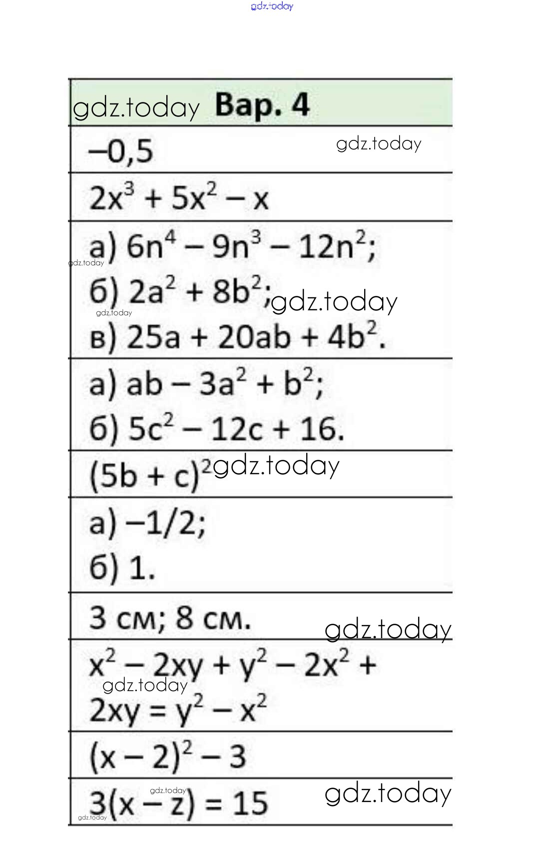 На страницах сайта gdz.today вы найдете учебный и вспомогательный материал, направленный на улучшения знаний школьной программы. ГДЗ - онлайн мир знаний Решение к контрольной работе №7. Многочлены Вариант 4 Контрольным работам по Алгебре для 7 класса Кузнецова, Минаева Просвещение 2018